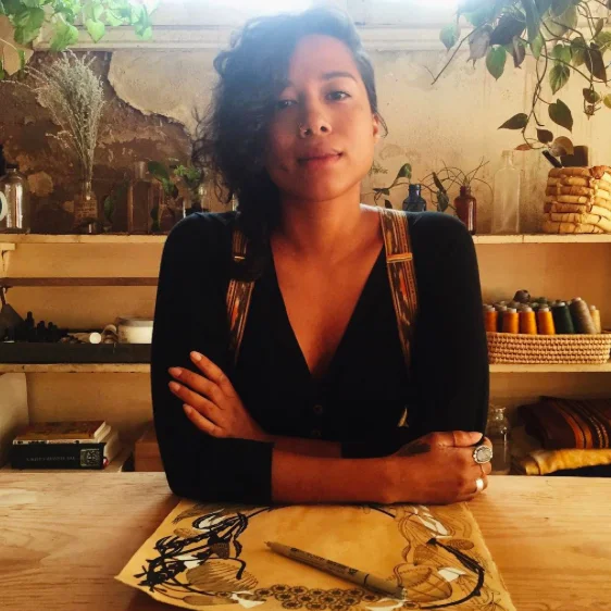 I've had no formal training. This natural urge to create and paint has been with me since I was a little girl. I took my talent more seriously about 7 years ago. I eventually had to follow my heart and dive deep in my work while teaching and disciplining myself in the many ways and forms of art. It would have felt unnatural and going against the grain of my being if I didn't. The nature of my work reflects what I'm inspired and moved by. My subjects and aesthetics are constantly changing and shifting. At the present moment all I want to do is be immersed in botanicals, geometric forms and symmetry.
